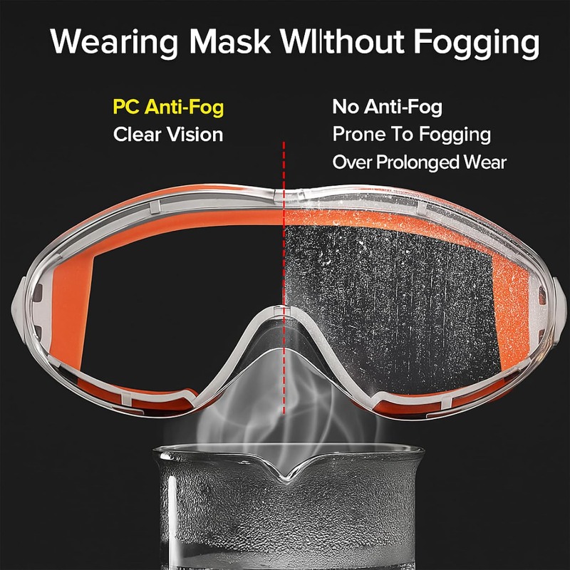 The PC impact-resistant lenses provide excellent visibility while shielding your eyes from chemical splashes, dust, and flying debris. Built-in anti-fog coating ensures the lenses stay clear even in demanding environments.