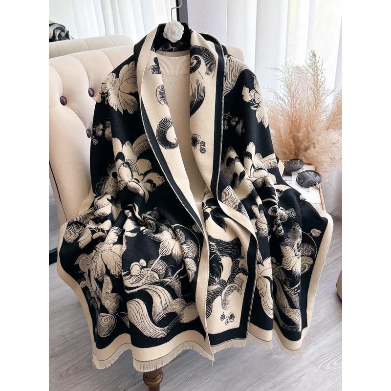 Featuring an elegant plant-inspired pattern, this scarf adds a relaxed bohemian touch to seasonal outfits. The artistic design pairs effortlessly with coats, sweaters, and jackets for everyday styling.