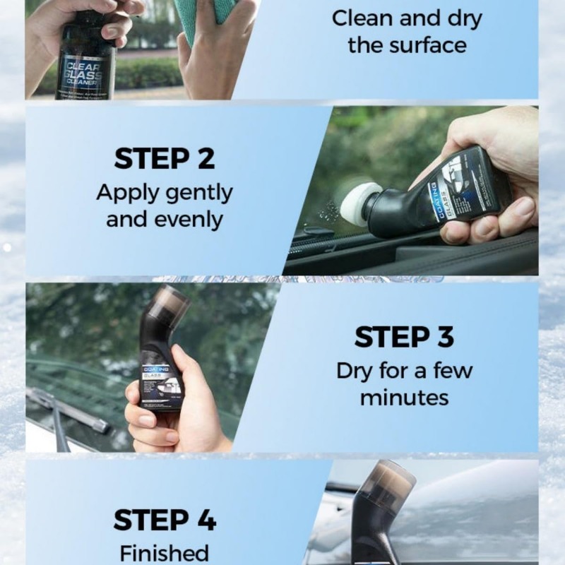 The micro-molecular coating forms a thin protective layer on glass surfaces, helping slow down fog buildup over time. With regular use, it helps maintain clearer windshields, side windows, and mirrors.