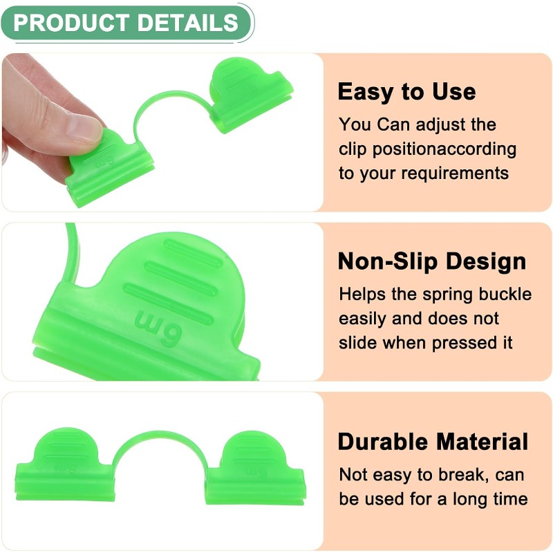 These greenhouse clips are suitable for a wide range of gardening needs, including securing greenhouse film, shade cloth, netting, mesh covers, and plant protection fabric. The natural green finish blends easily into garden environments while providing reliable support.