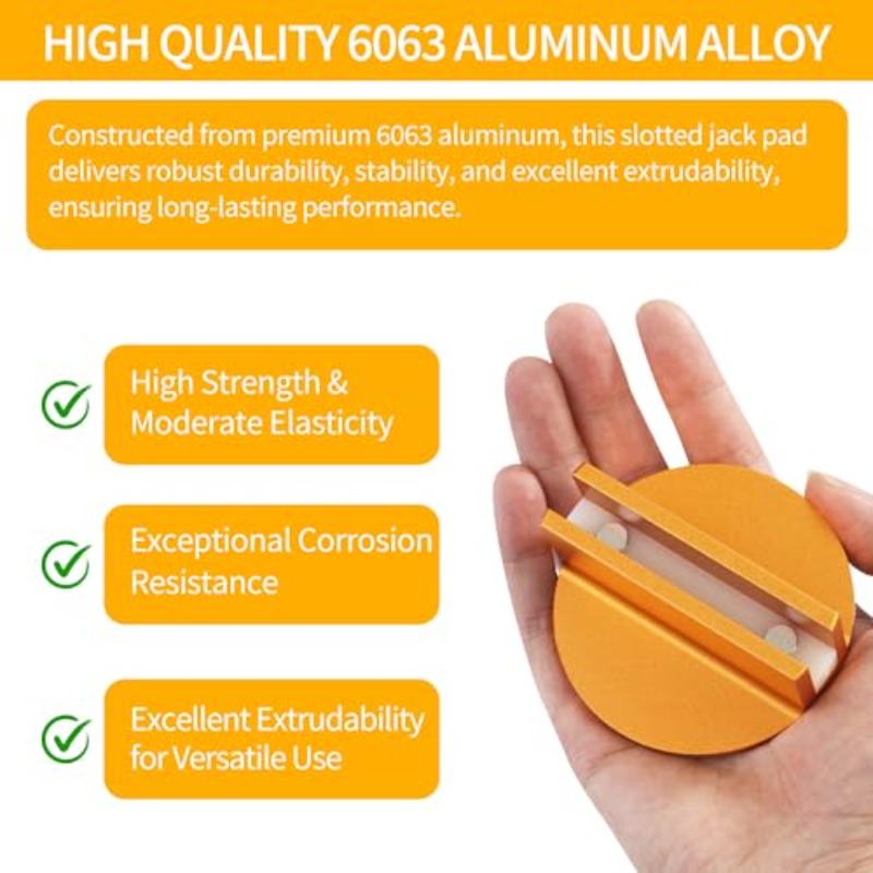 Expertly CNC-machined from premium 6063 aluminum alloy, this jack pad offers exceptional strength, corrosion resistance, and long-term durability — far superior to traditional rubber pads.