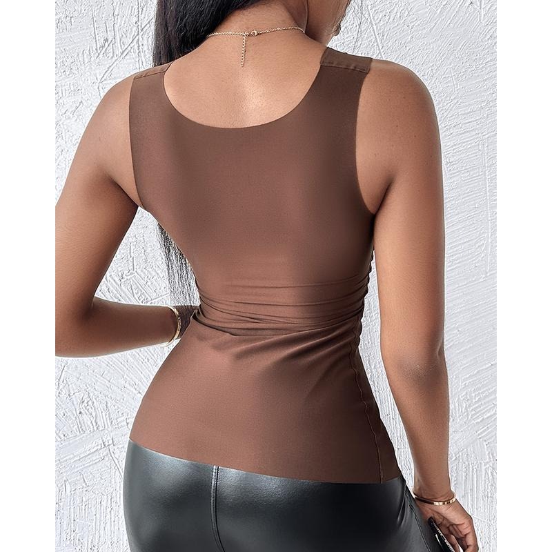 Designed with a four-way stretch fabric, this body-hugging tank top smooths unwanted bulges and helps minimize the appearance of side boob fat. It enhances the look of a fuller bust and a more defined waist while maintaining comfort and flexibility for all-day wear.