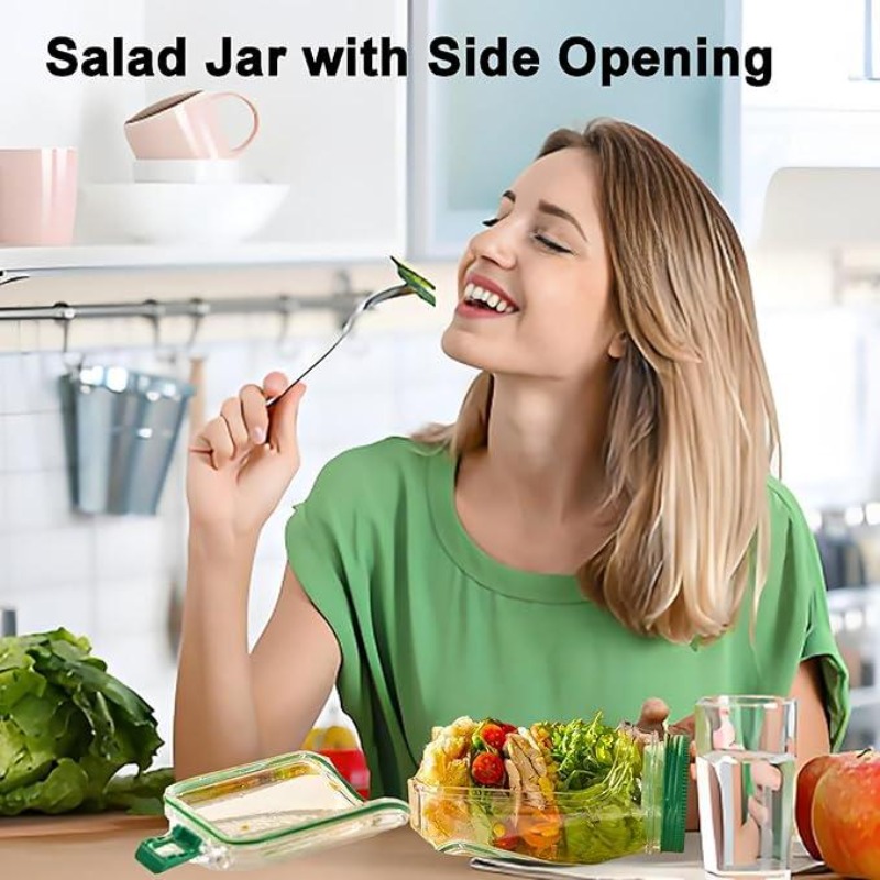 Created for modern, on-the-go lifestyles, this salad jar makes preparing and enjoying fresh meals simple and convenient. Its smart structure keeps ingredients organized and fresh, making it perfect for meal prep, lunches, and everyday use.