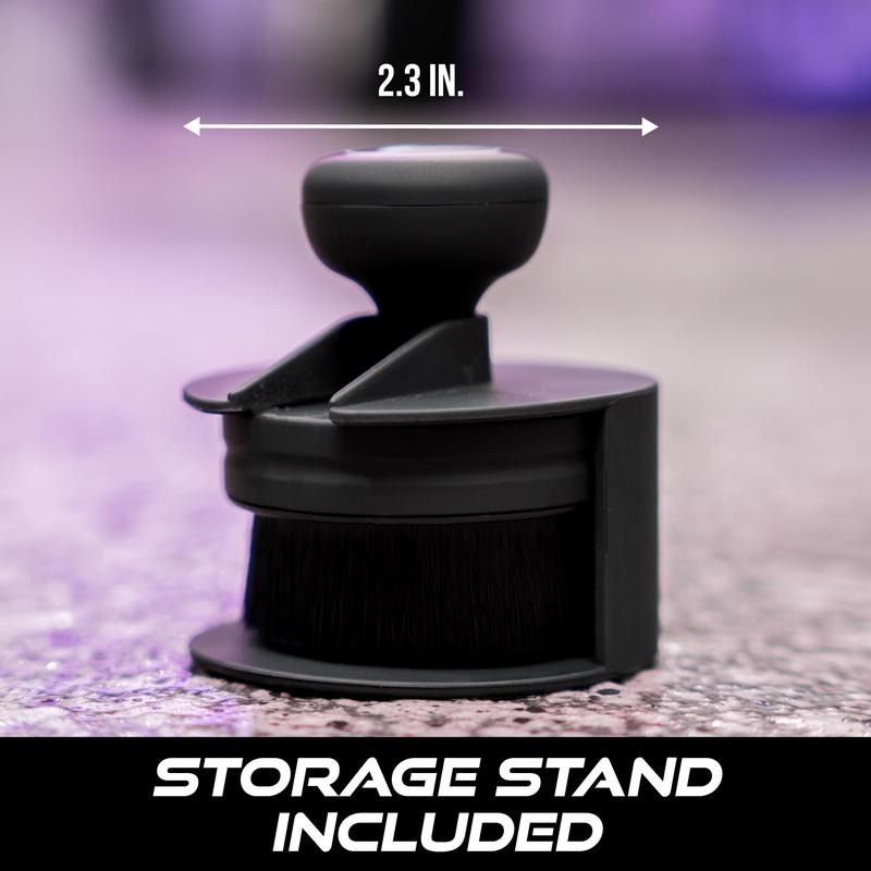 When the job is done, simply rinse the brush, shake off excess water, and place it in the included stand. The stand keeps the bristles elevated and protected, helping them dry quickly and maintain their shape between uses. It also keeps your detailing shelves neat and prevents product residue from touching other tools.