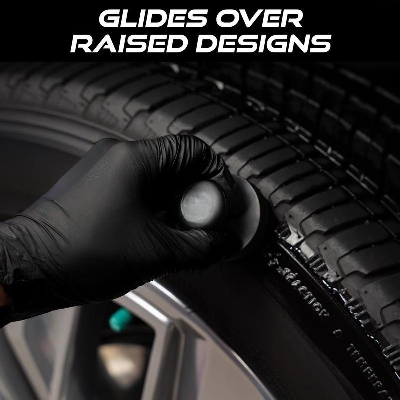 From low-profile performance tires to chunky all-terrain sidewalls, the compact brush head contours easily to every tire profile. It reaches into tight areas around raised white letters, logos, and intricate tread patterns on the sidewall, giving your wheels a uniform, deep black finish with professional detailer results at home.