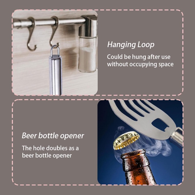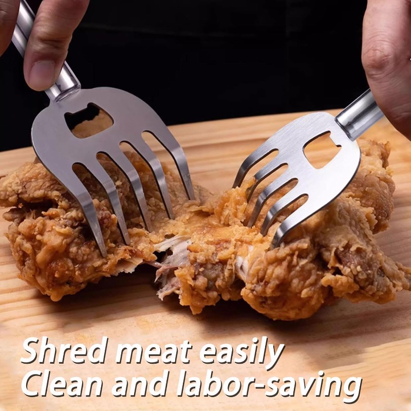Perfect for pulled pork, chicken, beef, and more, these meat shredding claws are ideal for BBQs, sandwiches, meal prep, and family dinners. The integrated hole design also doubles as a convenient beer bottle opener.