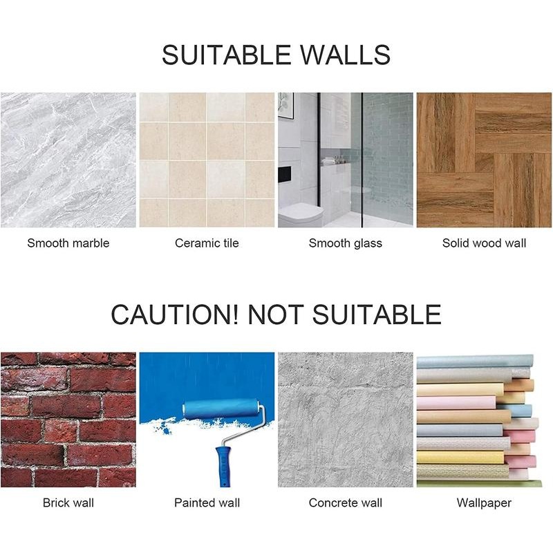 They are not recommended for rough or porous surfaces like brick walls, painted walls, concrete, textured tile or wallpaper, where suction cannot form a stable vacuum.