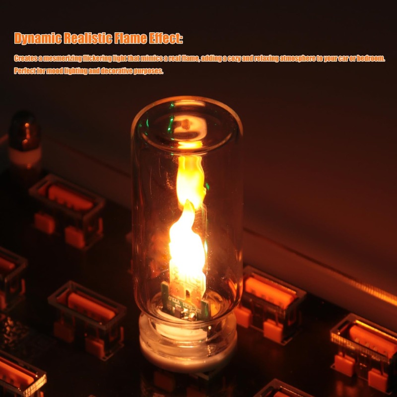 Create a warm and calming atmosphere with this lifelike flame-effect light. The dynamic LED flicker closely resembles real fire, adding a cozy, relaxing mood to your car, bedroom, or personal space.