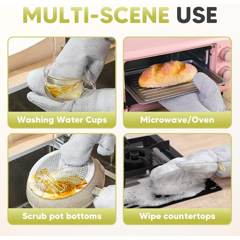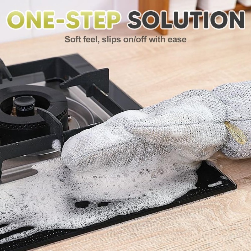Made with reinforced steel wire and an abrasive cleaning texture, these gloves remove grease, burnt residue, and stains effortlessly—without scratching cookware or surfaces. The included silver wire cleaning cloth wipes away oil and grime quickly for a spotless finish.